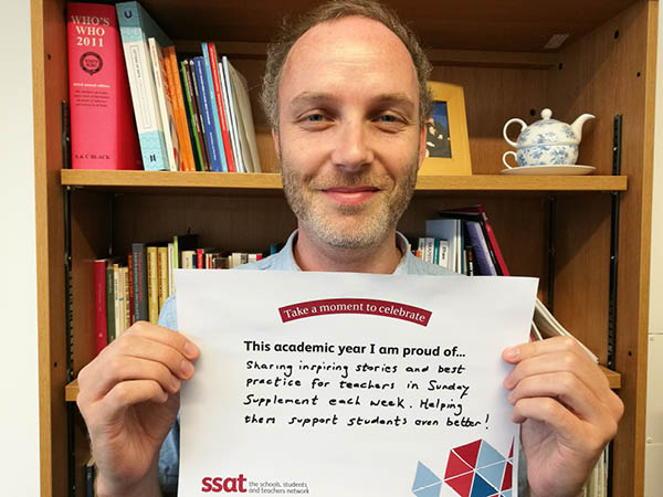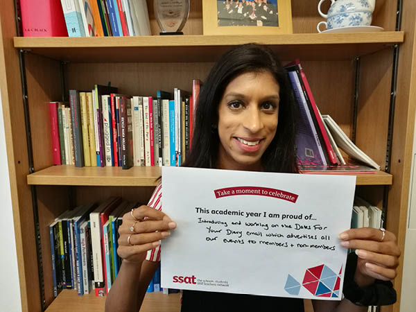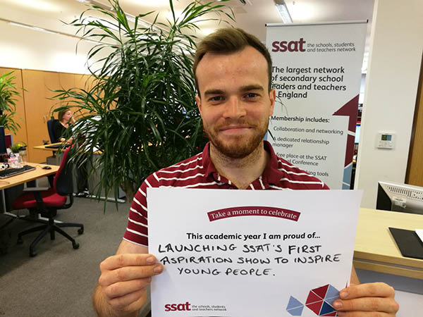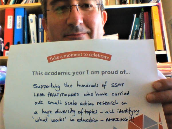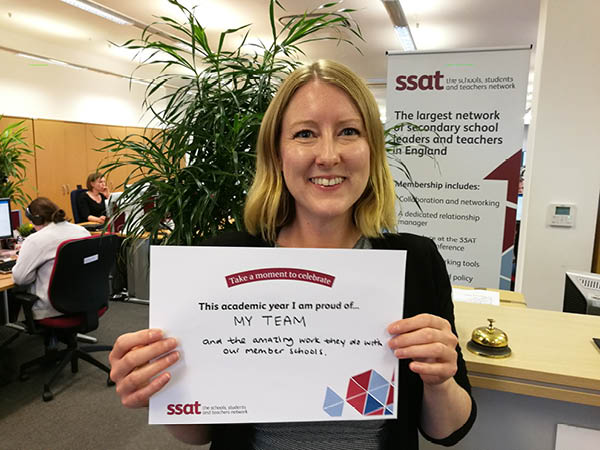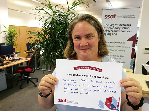 We encourage you and your colleagues to participate in celebrating what you are proud of doing this year, together we make a difference for the life chances of young people. Download the poster above, take a selfie and tag yourself on Twitter with the hashtag #SSATCelebrate to receive a retweet